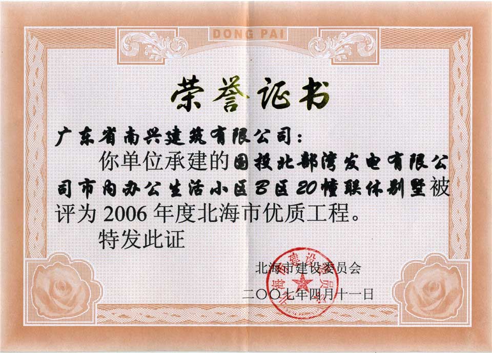 2006年度北海市優(yōu)質(zhì)工程