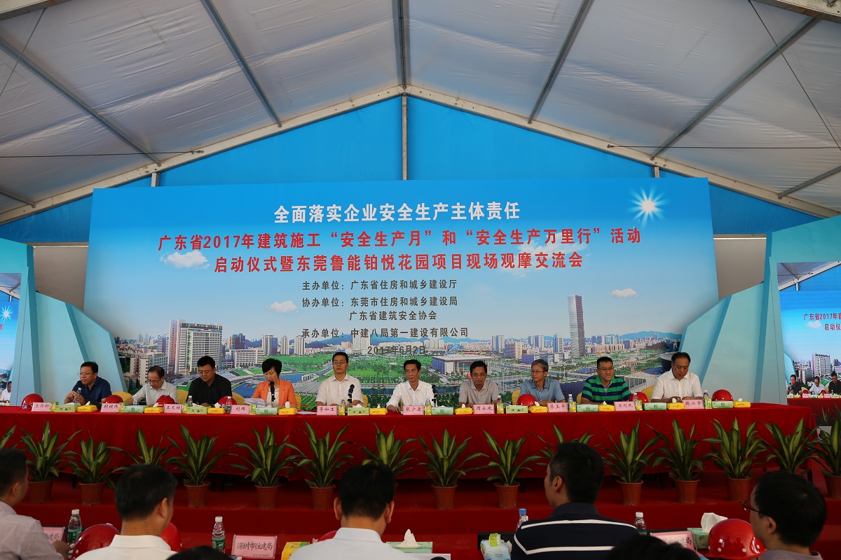 2017年全省建筑施工“安全生產(chǎn)月”和“安全生產(chǎn)萬里行”活動(dòng)啟動(dòng)儀式暨現(xiàn)場觀摩交流會(huì)6月2日在東莞市茶山鎮(zhèn)魯能鉑悅花園項(xiàng)目工地舉行。啟動(dòng)儀式暨現(xiàn)場觀摩交流會(huì)由省住房城鄉(xiāng)建設(shè)廳副廳長劉瑋主持,省住房城鄉(xiāng)建設(shè)廳廳長、東莞市副市長張少康出席并作動(dòng)員講話,住房城鄉(xiāng)建設(shè)部工程質(zhì)量安全監(jiān)管司司長李如生宣布2017年廣東省建筑施工“安全生產(chǎn)月”和“安全生產(chǎn)萬里行”活動(dòng)正式啟動(dòng)。住房城鄉(xiāng)建設(shè)部工程質(zhì)量安全監(jiān)管司、省安委辦、省消安委辦、項(xiàng)目建設(shè)、施工單位有關(guān)負(fù)責(zé)同志以及來自全省各地級(jí)市、東莞市各縣區(qū)住房城鄉(xiāng)建設(shè)行政主管部門分管領(lǐng)導(dǎo)和安全科(處)長、施工安全監(jiān)督機(jī)構(gòu)、行業(yè)協(xié)會(huì)代表以及部分施工、監(jiān)理企業(yè)分管安全生產(chǎn)工作負(fù)責(zé)人、項(xiàng)目負(fù)責(zé)人、省住房城鄉(xiāng)建設(shè)廳機(jī)關(guān)及廳直屬單位的代表等近1000人參加了活動(dòng)。